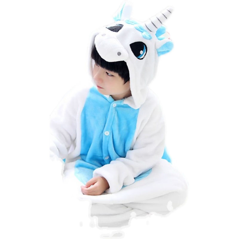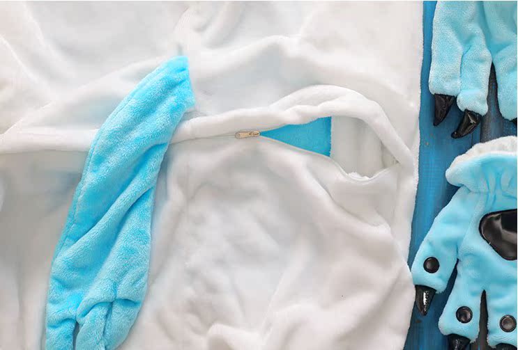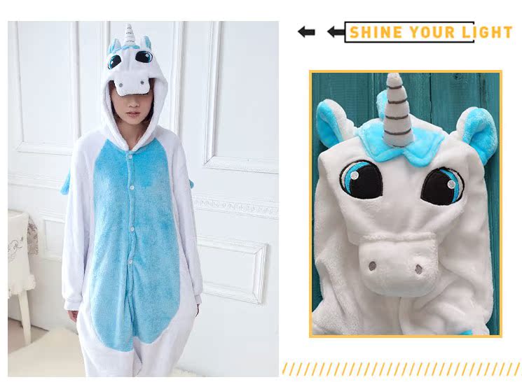 Couple men and women cartoon animal flannel one-piece long-sleeved cute anime blue unicorn pajamas children's home clothes