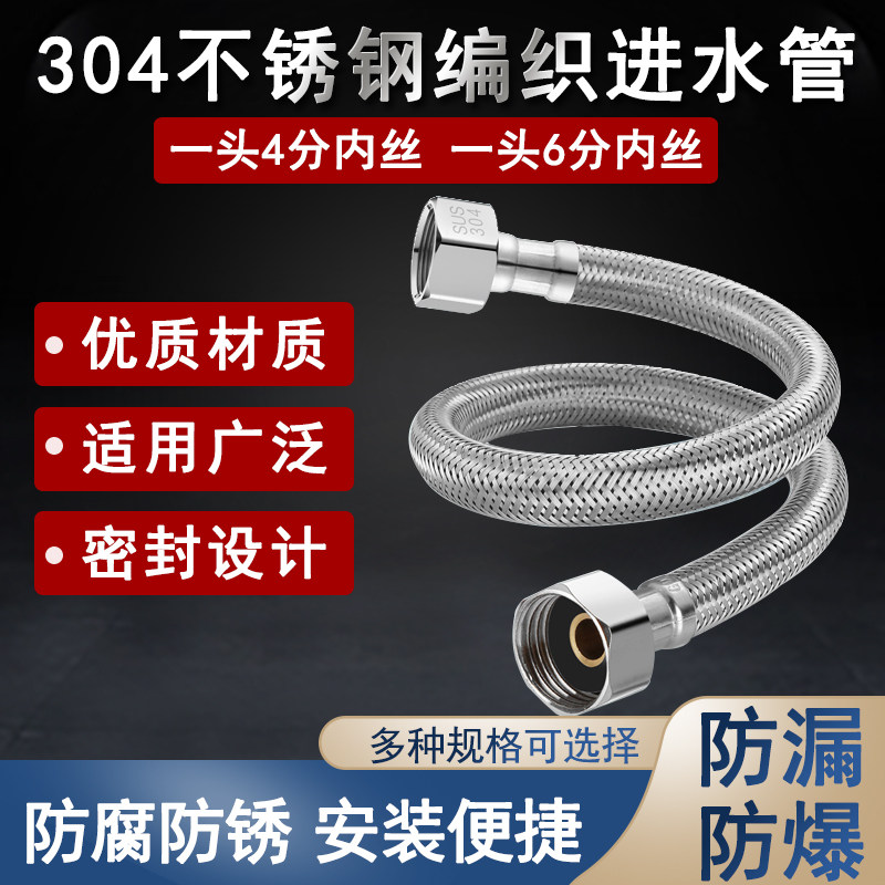 4 minutes 6 minutes inner and outer wire hose extension tube 304 stainless steel braided hot and cold water inlet pipe resistant to high temperature explosion-proof pressure