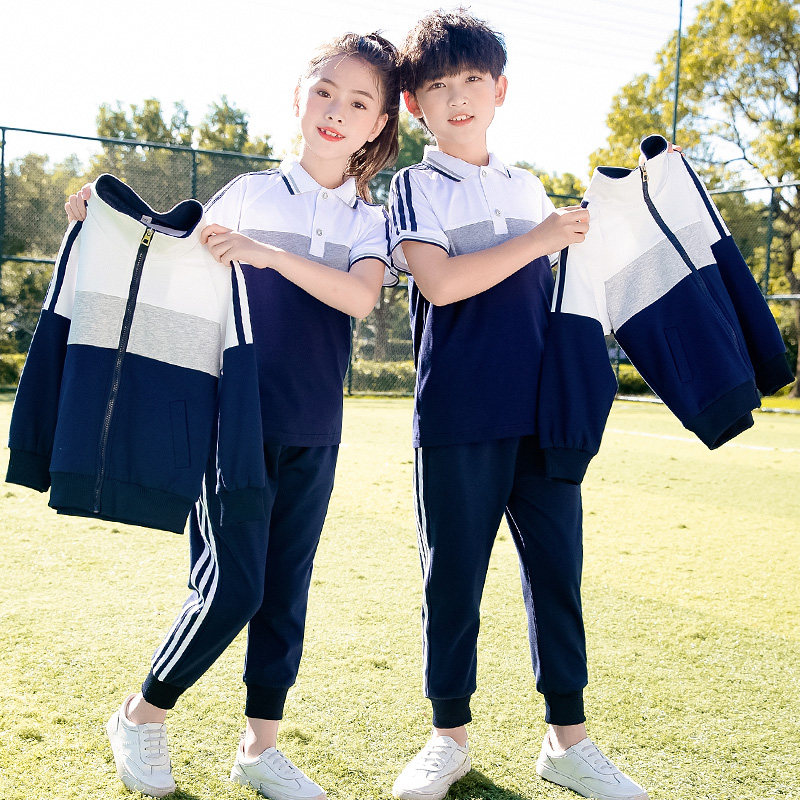 Early Childhood Autumn Garden Clothing Spring Autumn School Uniforms Short Sleeves Elementary School Students Class Clothes Pure Cotton College Wind Sports Clothing Three Sets Hot Pins