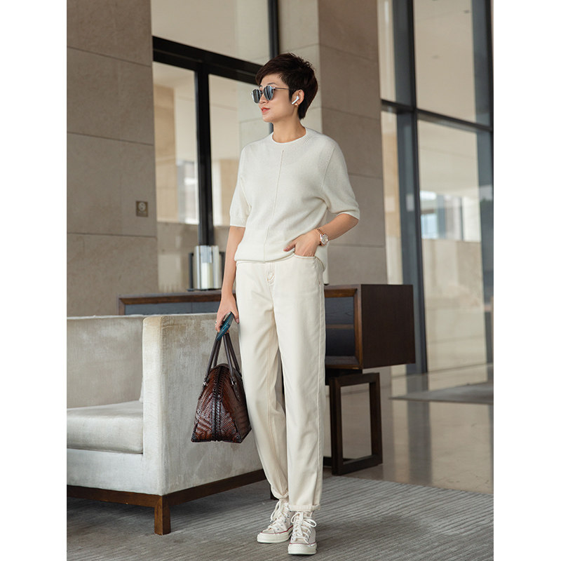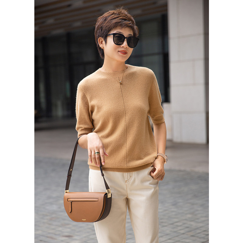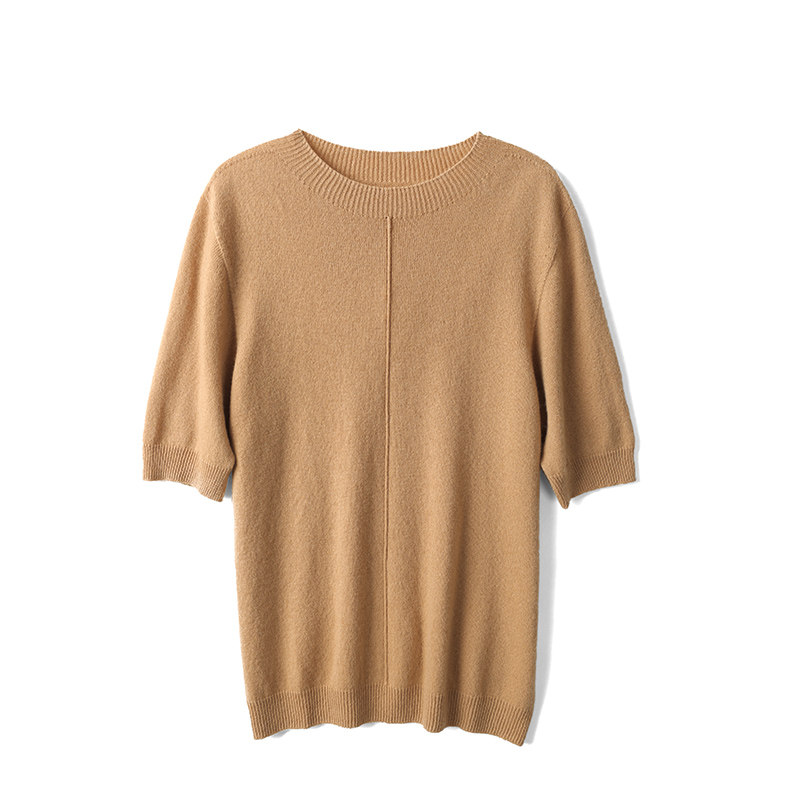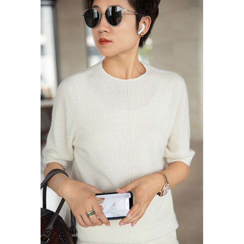 WOW One-piece seamless cashmere sweater A-type cashmere Pure sense of class Crew neck half-sleeve sweater