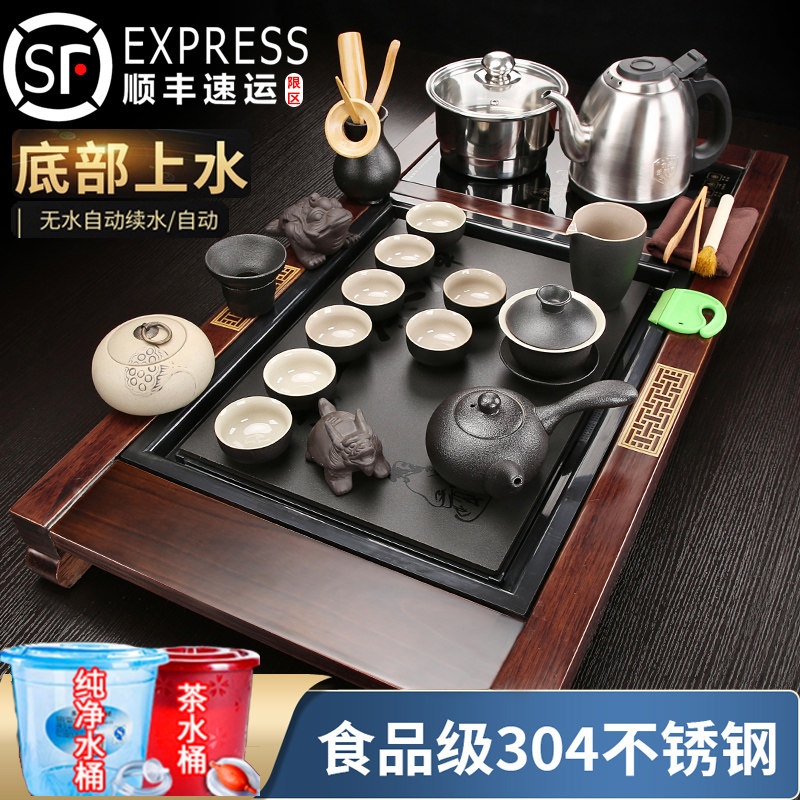 Purple Sand Tea Set Set Tea Tray Home Burn-Proof Full Automatic Integrated Bottom Glass Upper Kettle Living Room Solid Wood Tea Table