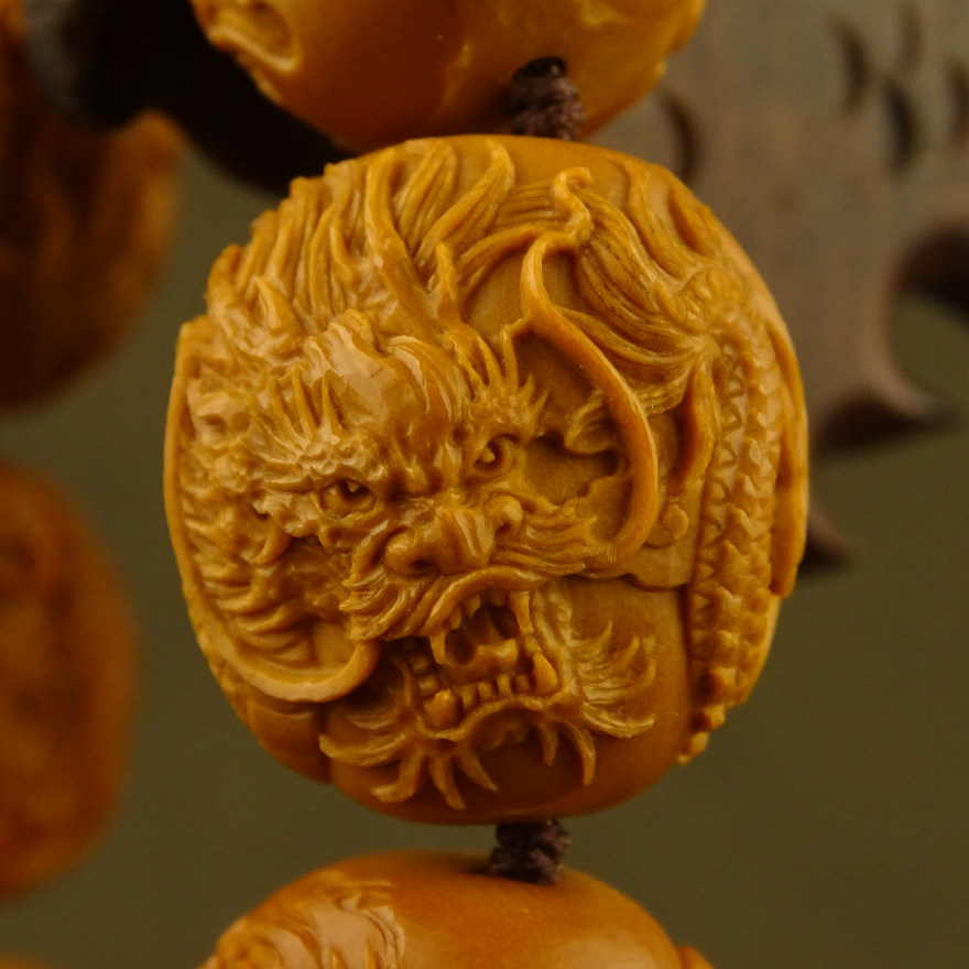 Zhang's Lin pure handmade "Kowloon Theater Pearl" Zhoushan olive walnut carved Su hands to play old oil nuclear