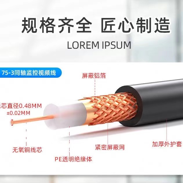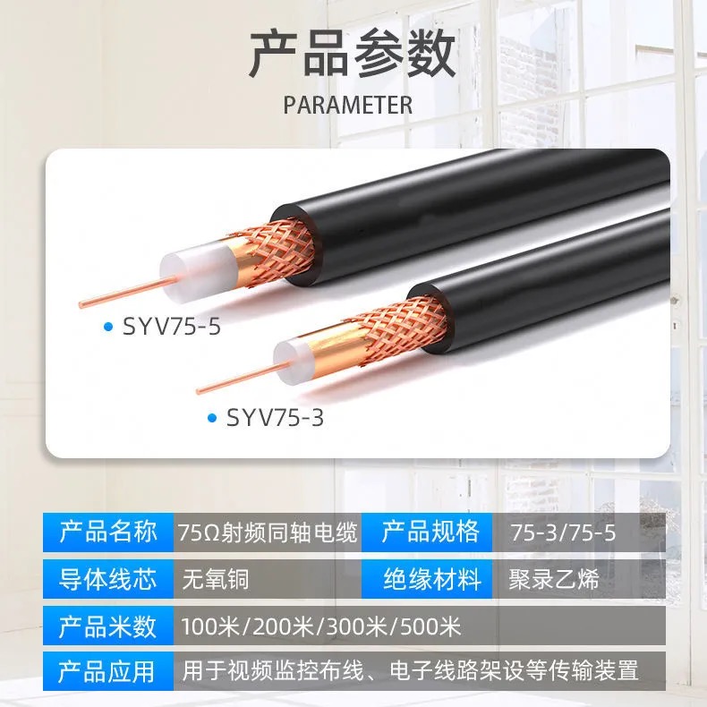 Transmission line SYV75-3 - 5 copper core copper camera camera coaxial simulation of the national standard oxygen - free copper surveillance line
