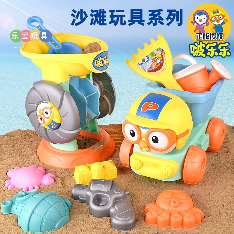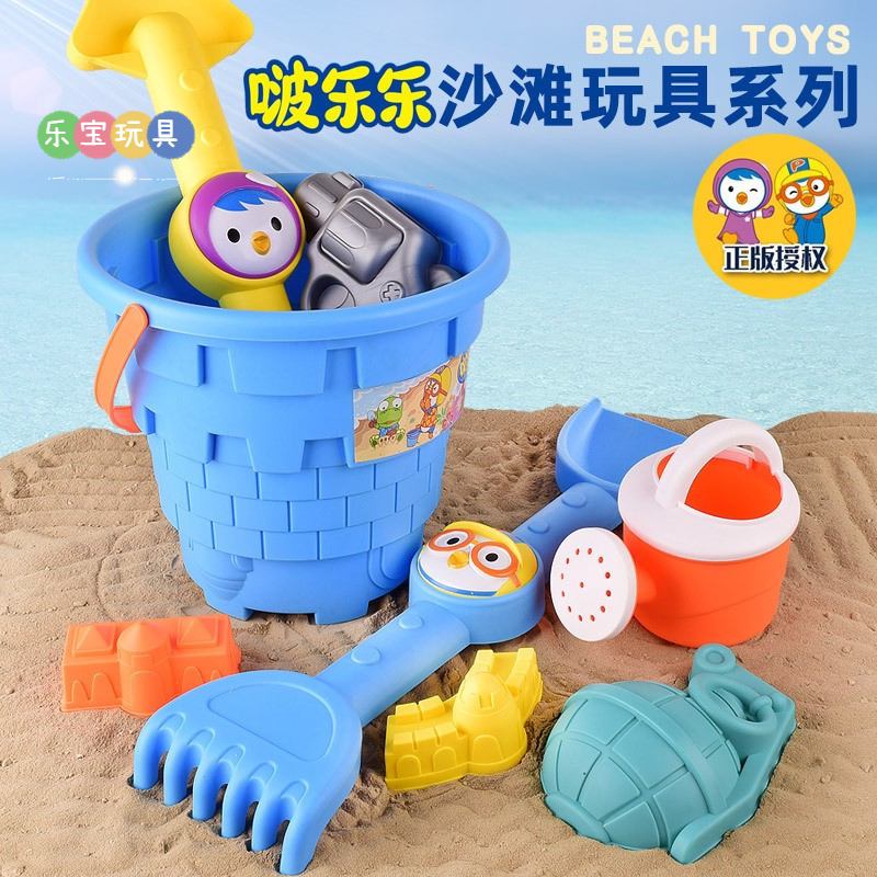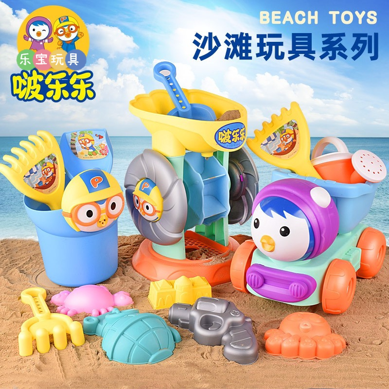 Summer beach beach large play sand bucket toy set children's hourglass play water sand digging tool cart shovel