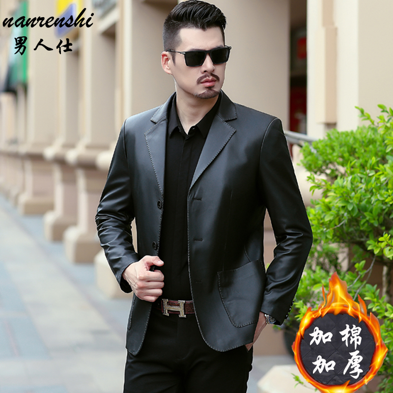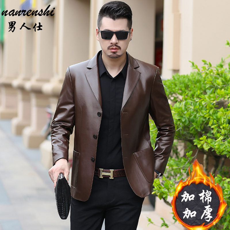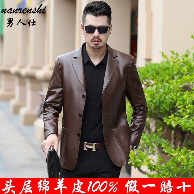 Henning genuine leather leather clothes men's spring and autumn dads Sheep Leather West Suit Big Code Middle Aged Leather Jacket Leather Jacket Suit-Taobao