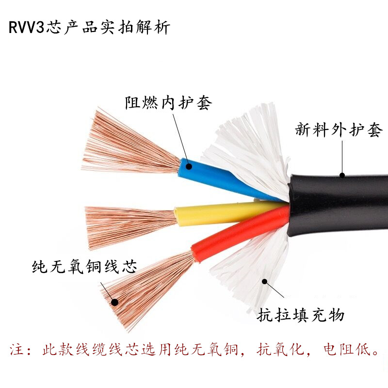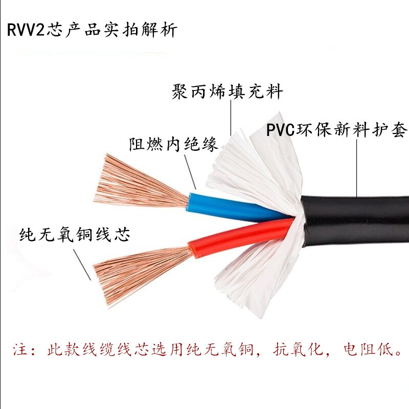National standard RVV2 3 4 5 core 0 5 0 75 1 0 1 5 2 5 square power cord sheath monitoring soft cable