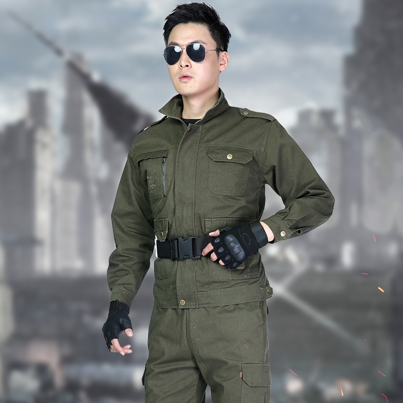 Hot-resistant version pure cotton military fan labor protection work migrant workers land camouflamed suit men's army green electric welding thickened abrasion resistant