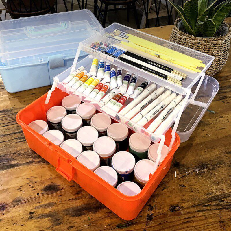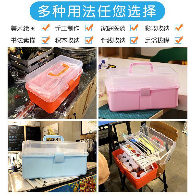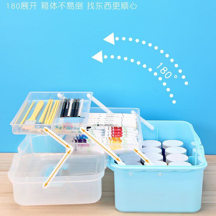 Art student toolbox transparent art supplies toolbox three-layer folding portable student painting box multi-functional home