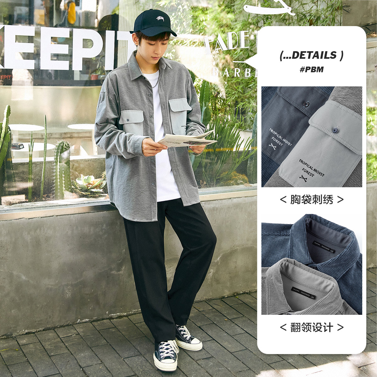 PEACEBIRD Men's Shirt Men's Corduroy Long Sleeve Shirt Fashion Embroidered Jacket Lapel Korean Version Fried Street Autumn Wear
