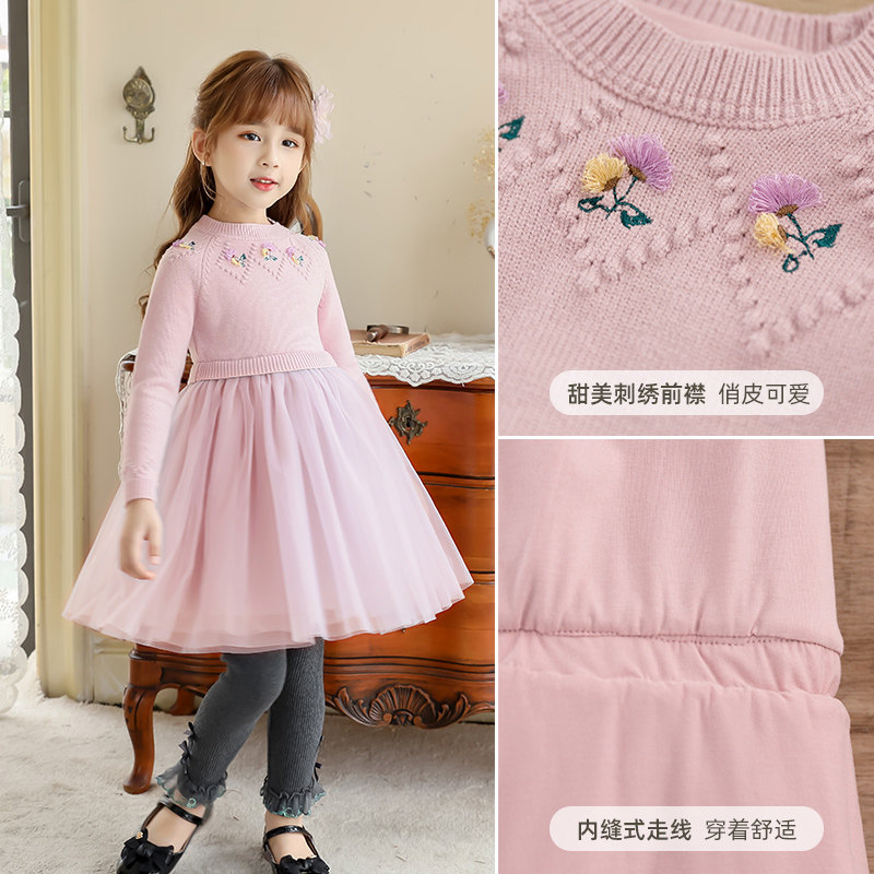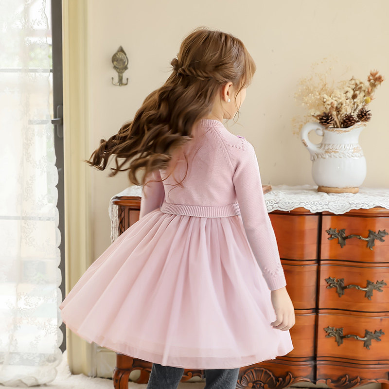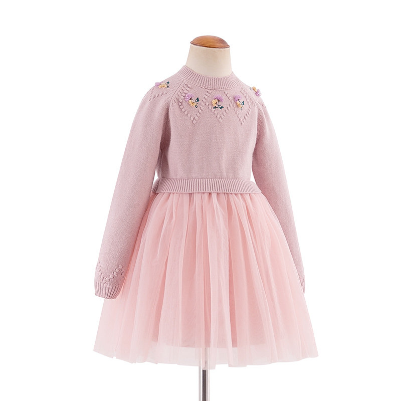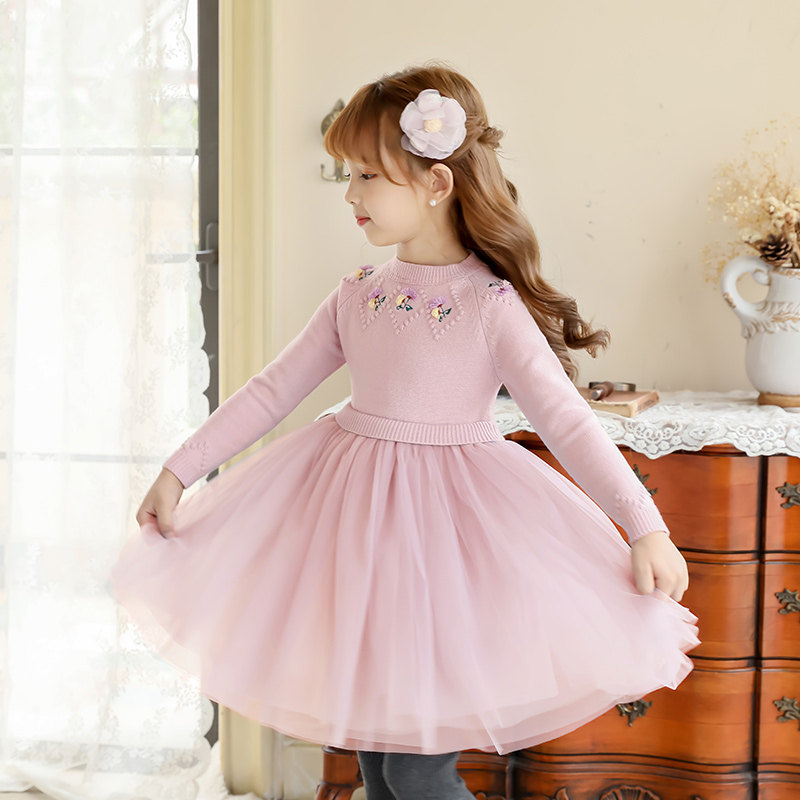 Boat Rat Girls Sweater Dress Long Sleeve Round Neck Flower Yarn Skirt Kids Princess Skirt Children's Skirt Girl Baby Dress