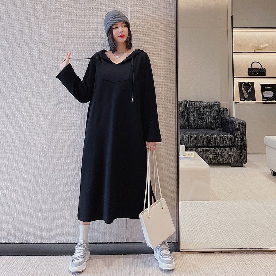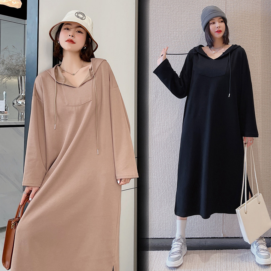 Pregnant women autumn new large size fashion suit long sweater skirt long sleeve hooded autumn dress coat female
