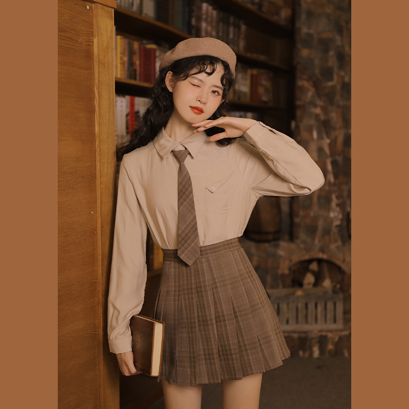 linjou Lingjiu check pleated skirt female spring college style small man short skirt plaid skirt high-waisted skirt