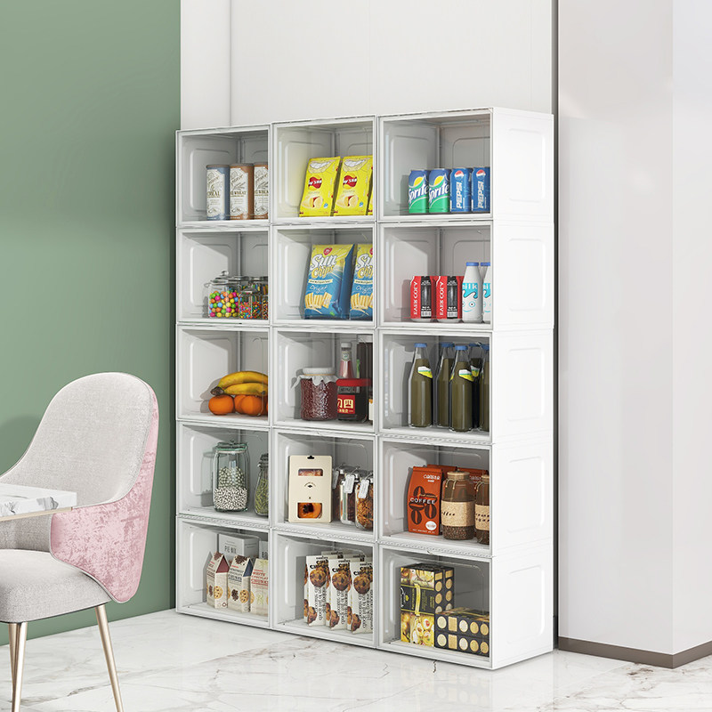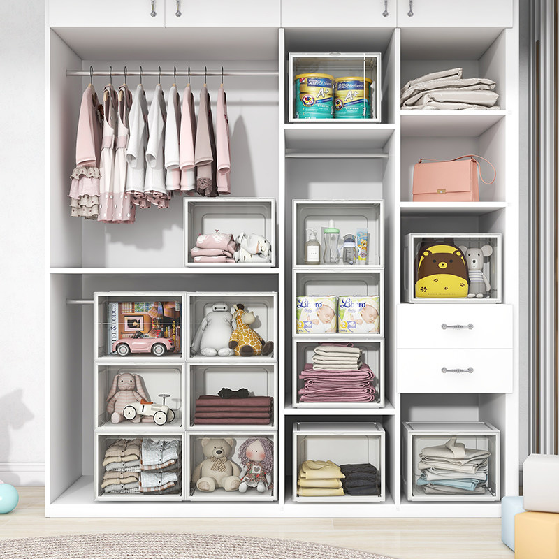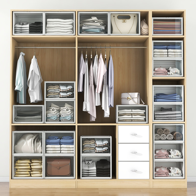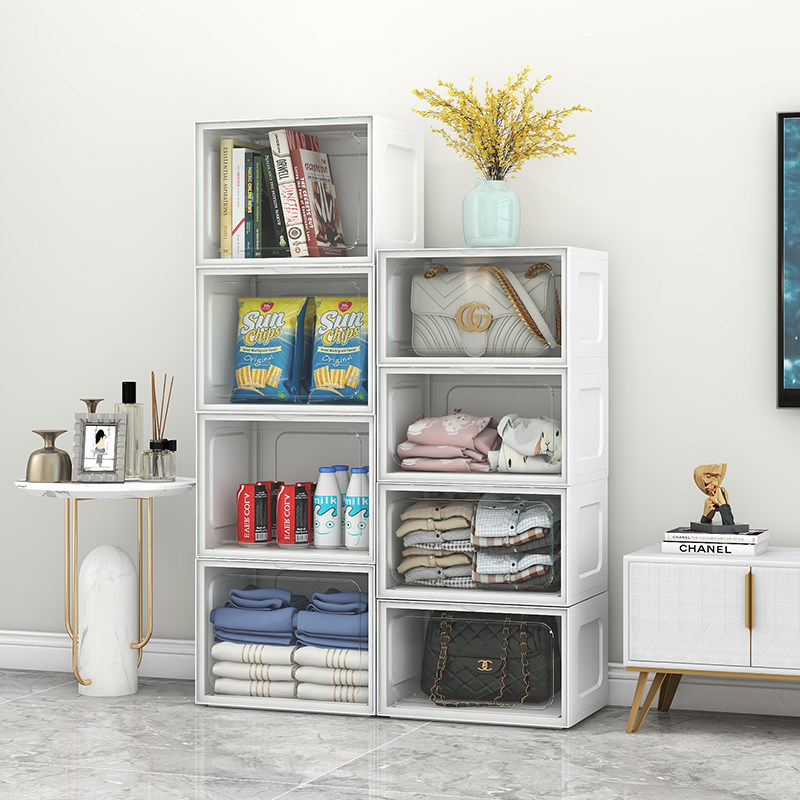 Front open transparent containing box home wardrobe clothes finishing box plastic toy book snacks storage box deity