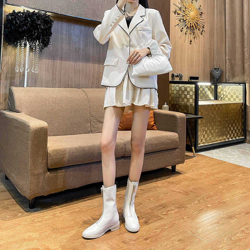 Inner height increased guidi women's boots ins Martin boots women's spring and autumn single boots front zipper shorts white soft leather ghost emperor short boots