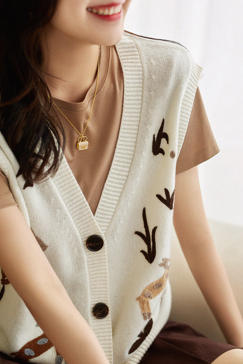 (Anti-season seconds kill no change) pass out the trendy sense stack wearing V collar embroidered animal embroidered knitted sweatshirt