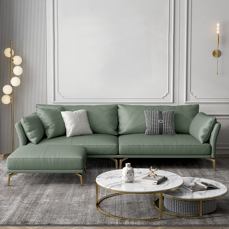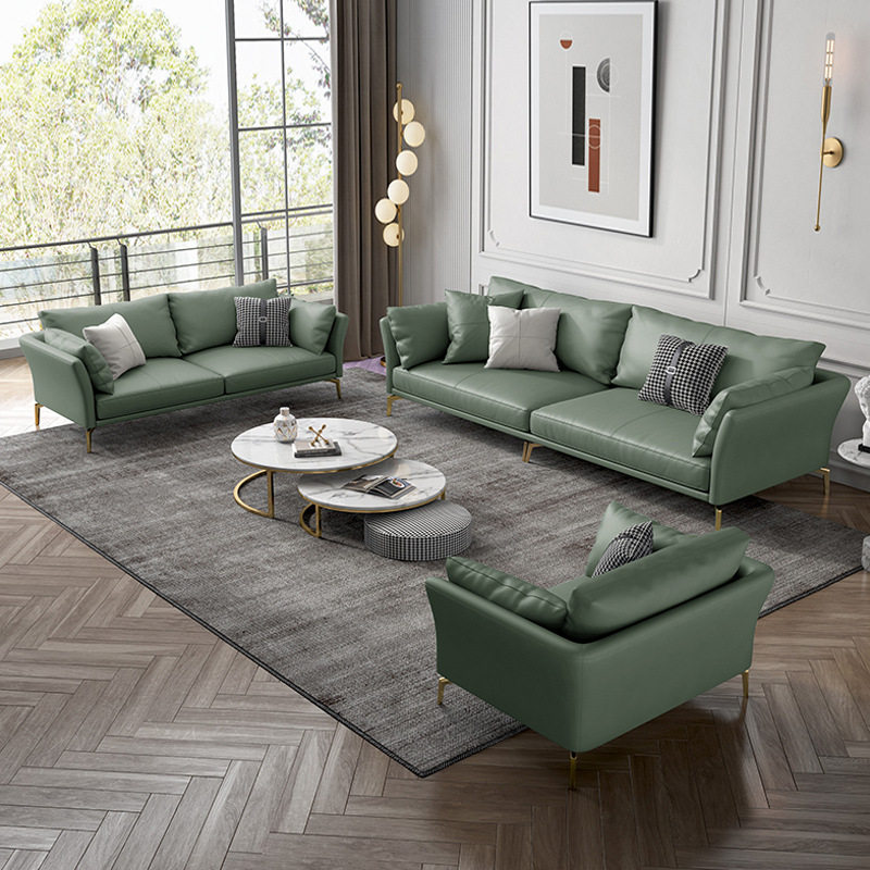 Willful light and luxurious minimalist leather sofas technology cloth art green living room modern minimalist small family trio position sofa