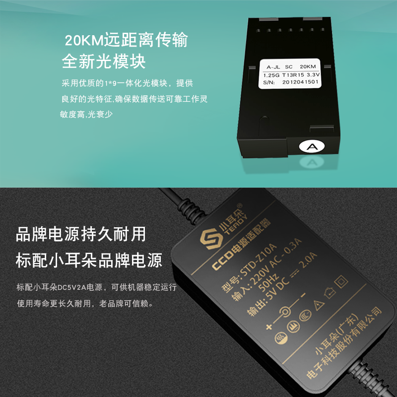 Lean one thousand trillion single mode fiber transceiver physical isolation 1 light 2 electric single fiber 20KM transmission photoelectric converter