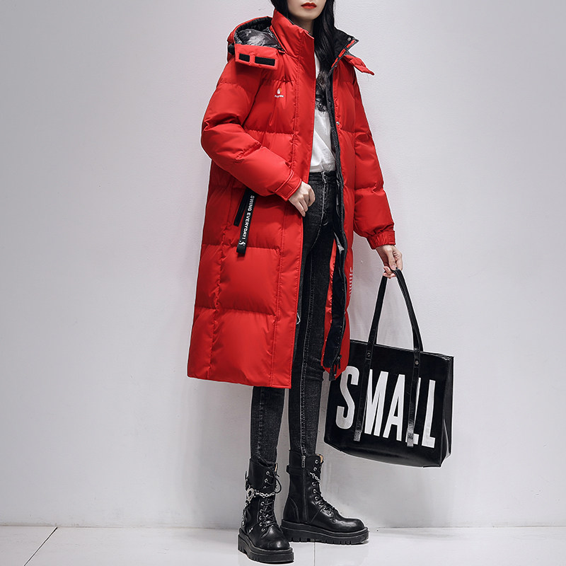 Jadeer Down Suede Women's Winter Long Version 2021 New Fashion Loose Casual Over Knee White Duck Suede Pure Color Jacket Tide FH