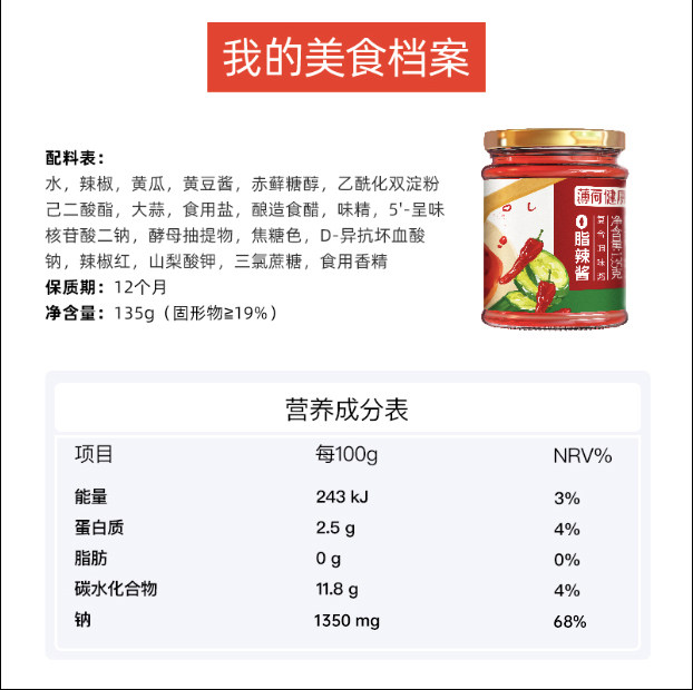 (0-fat pepper) for 135g bottles of the bottle.