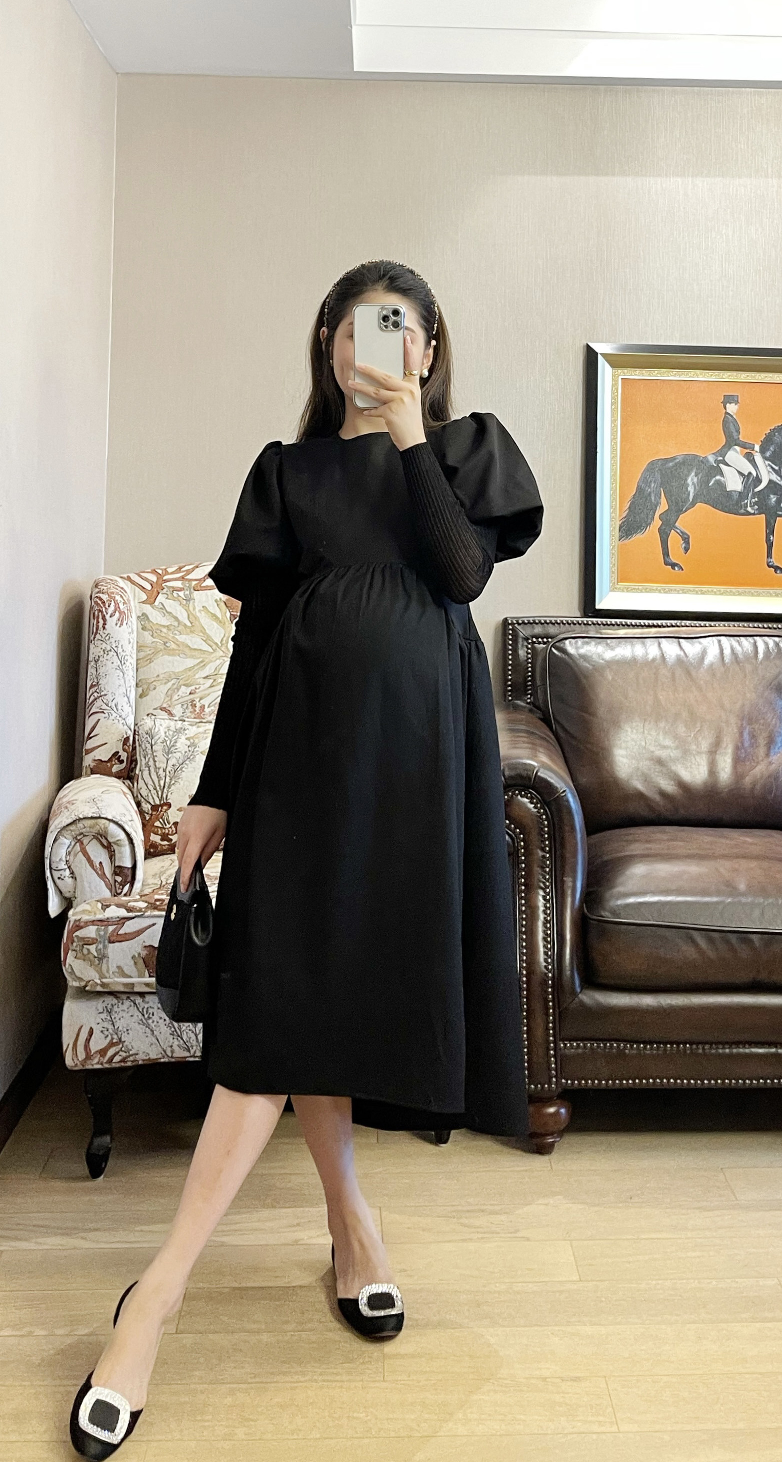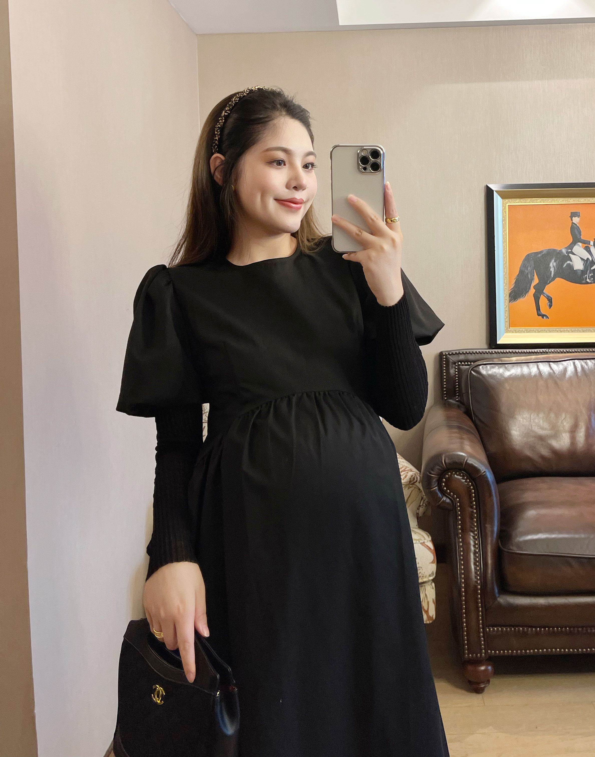 PEIPEI maternity dress high-definition stitching one-piece dress suit autumn new high-end Hepburn style large size spring dress