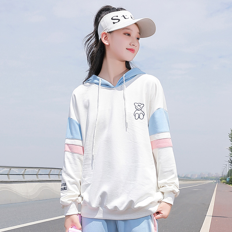 Female Great Boy Spring Dress 2022 Spring New Foreign Pie Casual Loose Girl's Lianhood Sports Shirt Spring and Autumn Girl Blouse