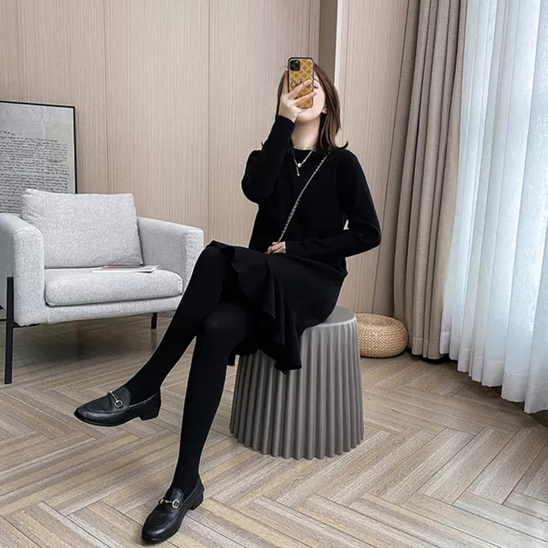 Skirts with coats women's autumn and winter sweater skirt bottoming knitted black dress short small fake collar