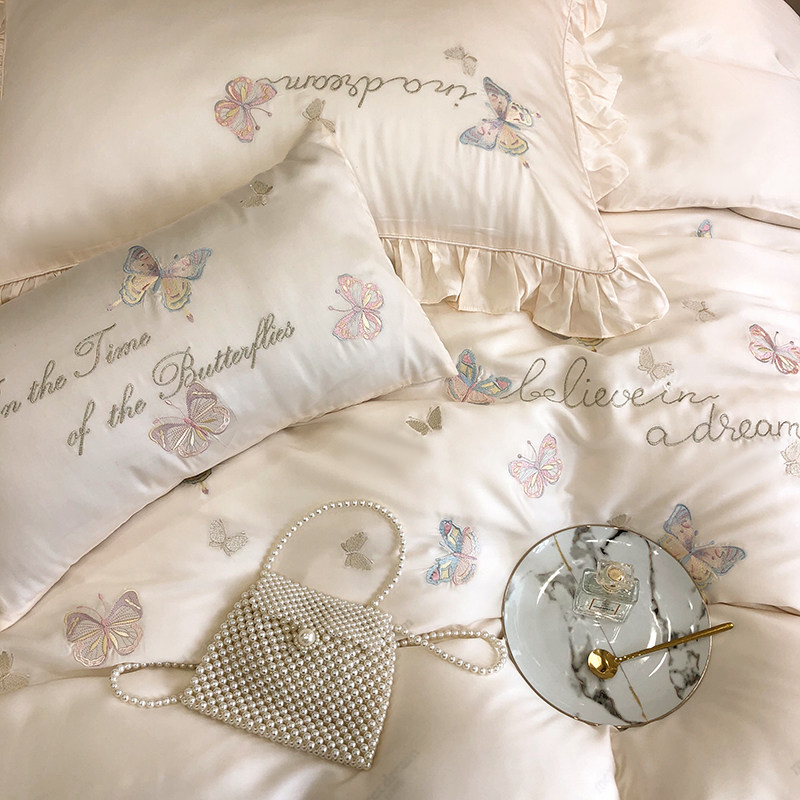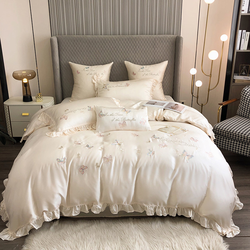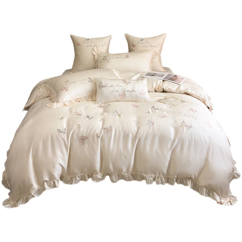 Light luxury style 100 double-sided Tencel four-piece set girl heart butterfly quilt cover cool ice silk summer bedding