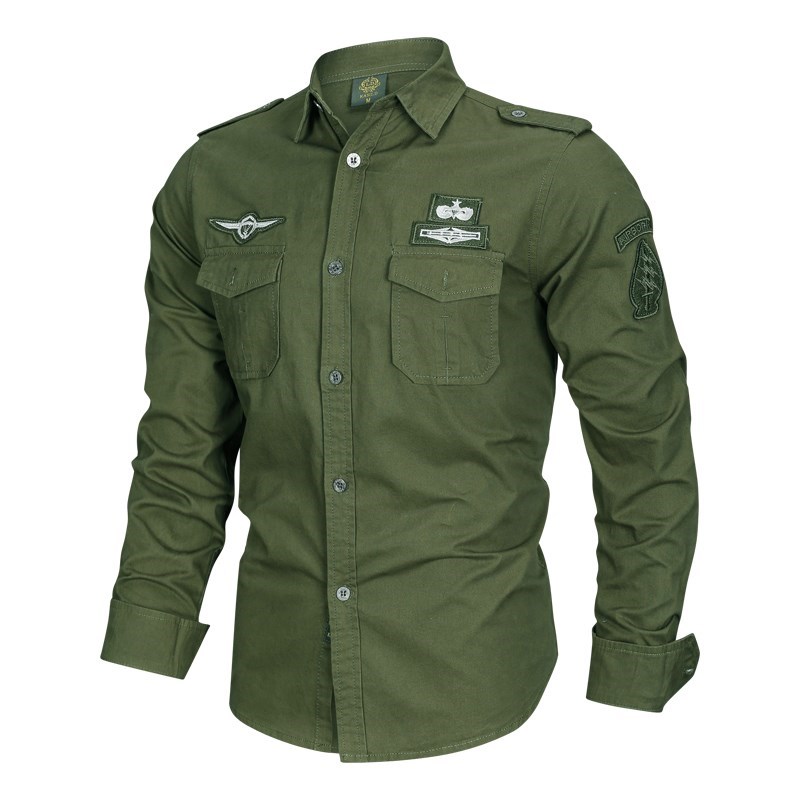 Multi-pocket tooling long sleeve male shirt autumn outdoor set large size for loose pure cotton casual blouse with camouflared uniform