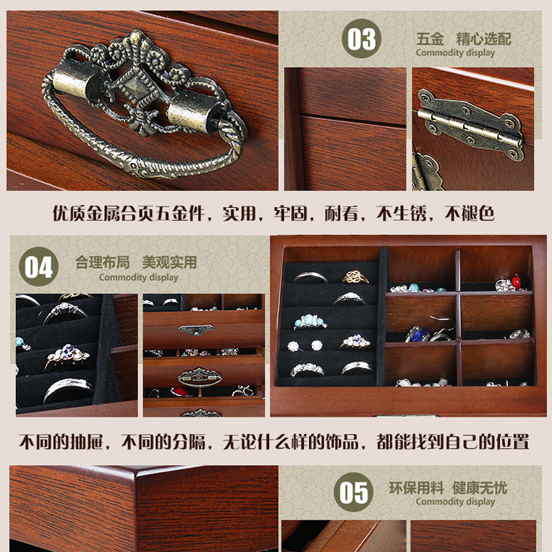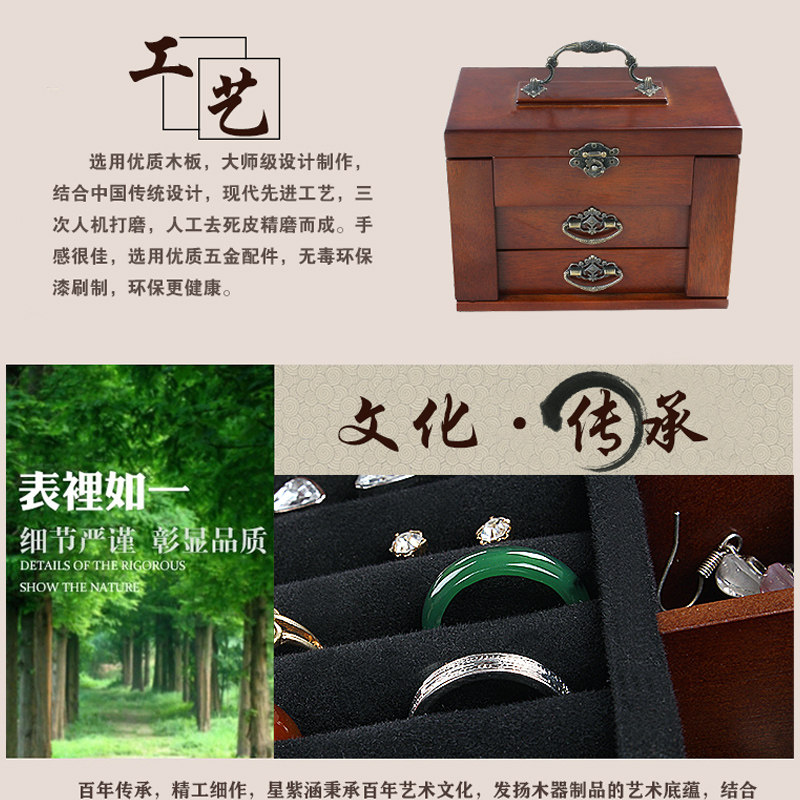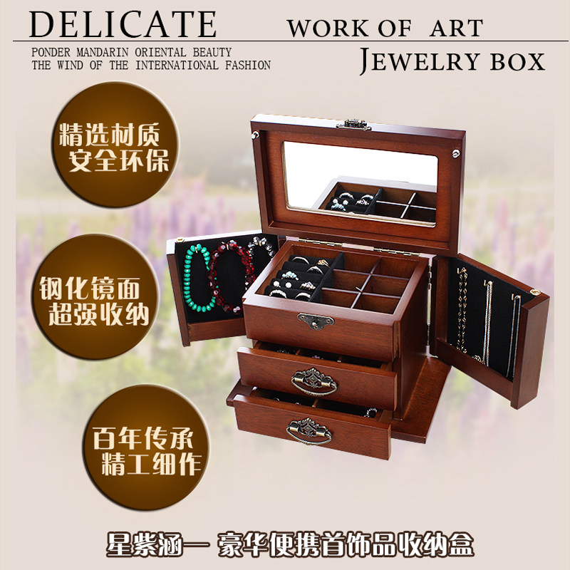 Solid wood jewelry box wooden lock handlock collection box necklace collection box earlock watch string jewelry box
