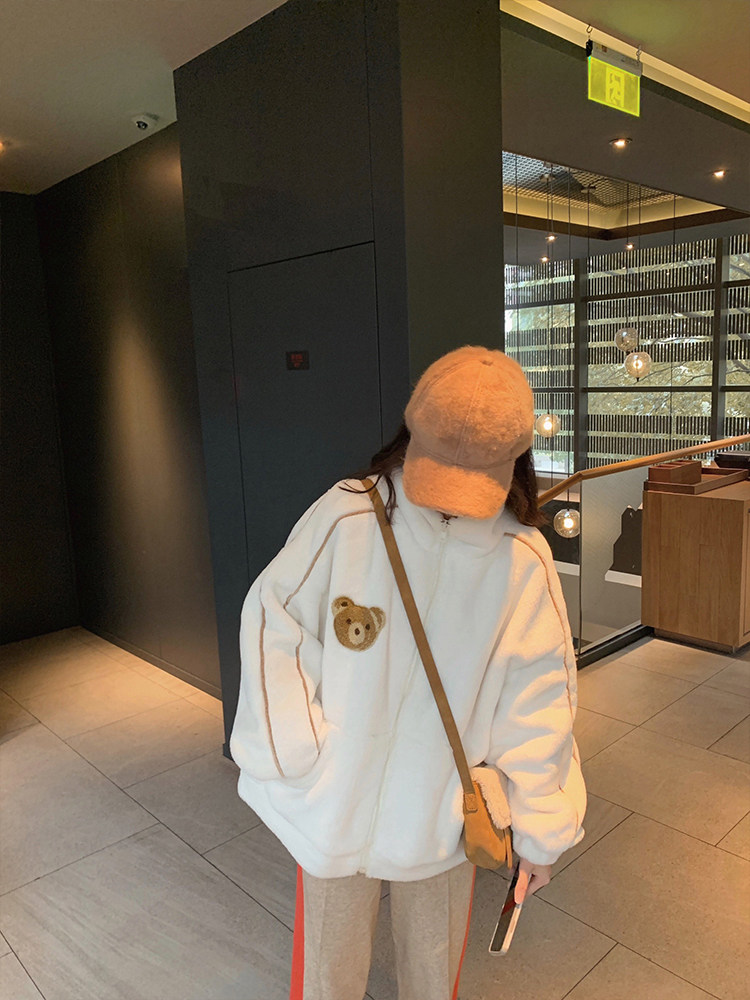 2022 Autumn Winter New Imitation Leather Grass Jacket Woman Small Bear Water Mink Suede Jacket Tide Loose Warm Rabbit Fur Plush Coat