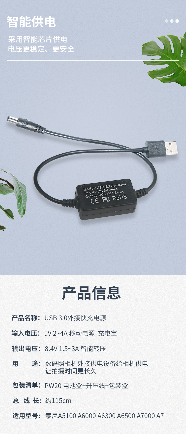 Sony FW50 battery USB adapter micro-single-phase machine charger A7S2 A6000 A6000 A6000 A6400 A6500 A6500