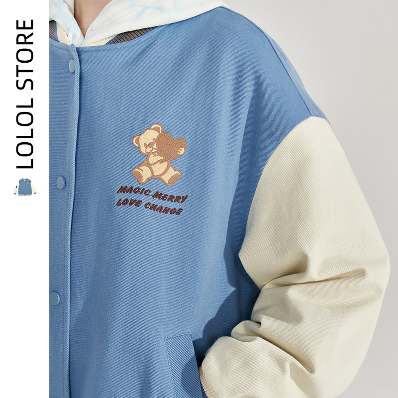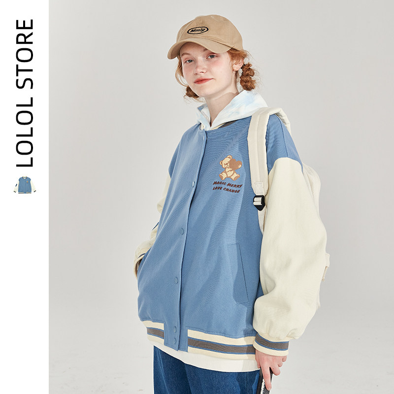 LOLOL college style baseball uniform women's 2022 new autumn color matching student small stand collar jacket coat