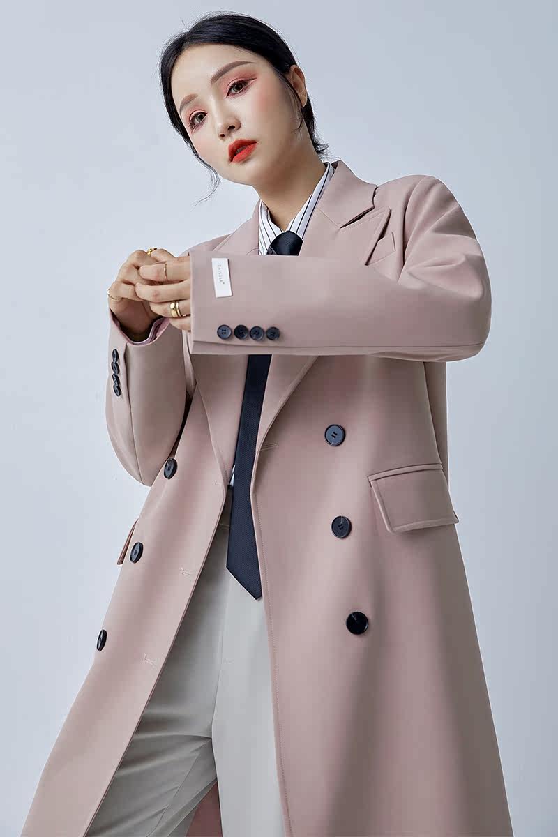 Pink Suit Collar Temperament Sweatshirt Woman 2021 This year Pop Winter's new Korean version of the Korean version is loose and long coat woman