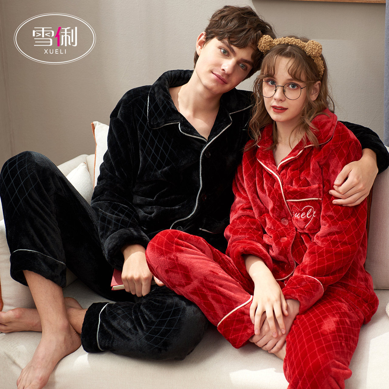 Xueli Coral velvet pajamas home clothing Plaid couples autumn and winter long sleeve flannel home clothing thickened set