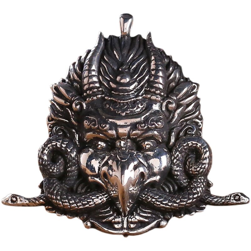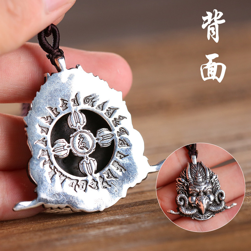 Pure Silver Buddha Statue with Golden Wings Large Peston Bird Downpestle Pestle Tibetan Male Lady Personality Big Pendant