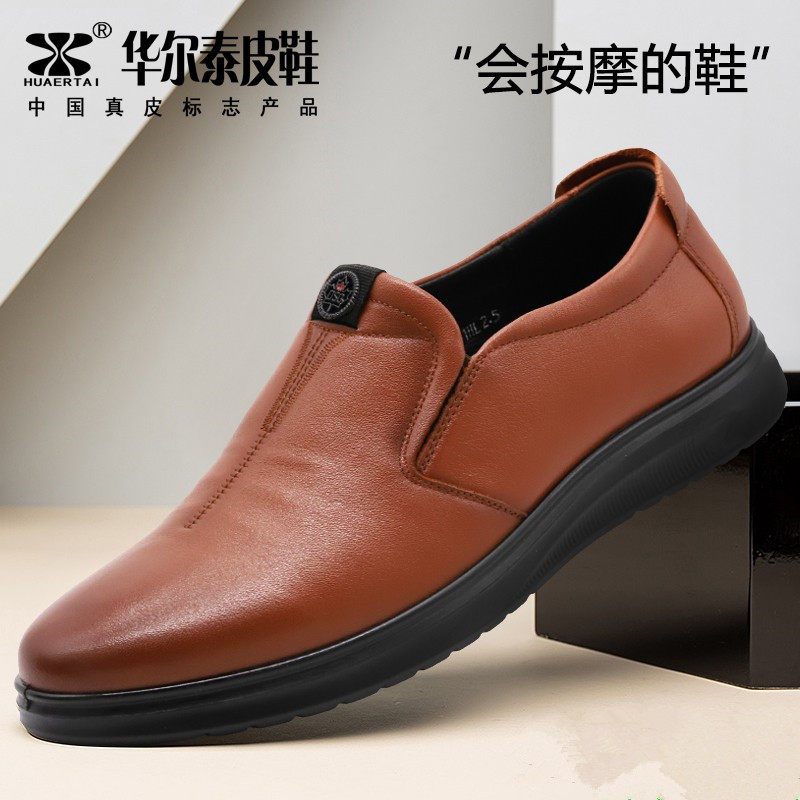 Walthai men's leather shoes round toe cover toe layer cowhide business casual shoes wear-resistant leather dad shoes magnetic shock health care