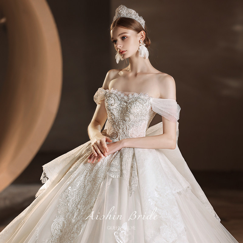 "Furlan" main wedding dress 2022 new bridal style Shoulder Temperament Luxurious Advanced Sensation Big Trailing Summer