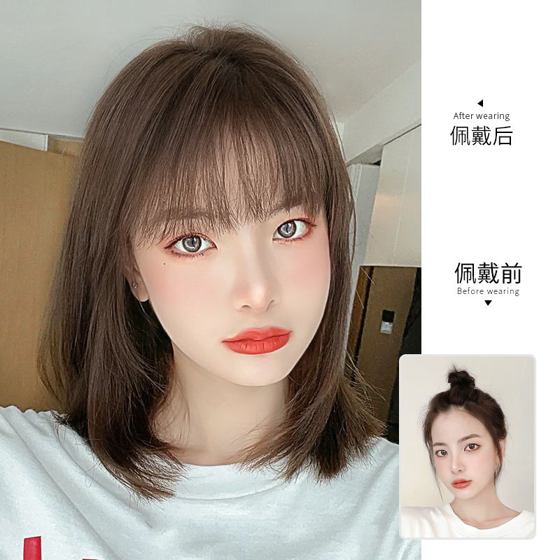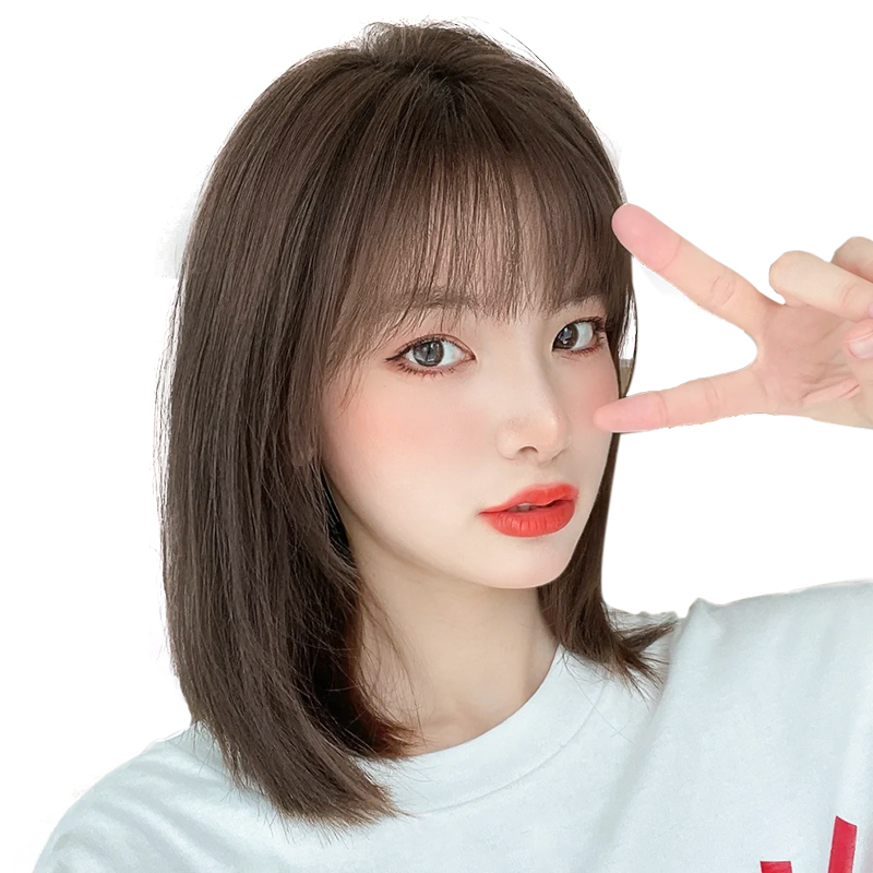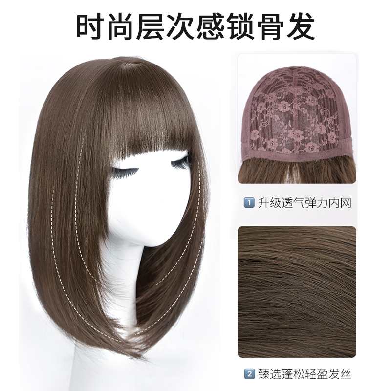 Wig female long hair full headgear collarbone short hair summer natural simulation human net red age reduction medium long hair wig