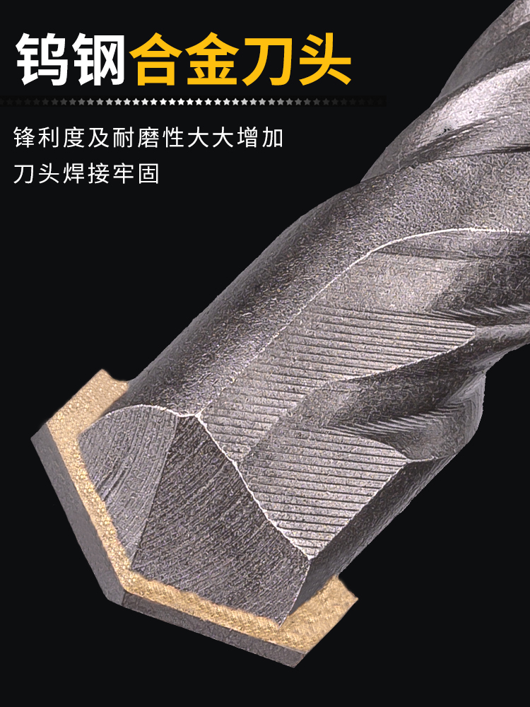 Lengthened impact electric hammer drill bit through the wall two pits two grooves round handle four pits square handle concrete cement wall punching drill