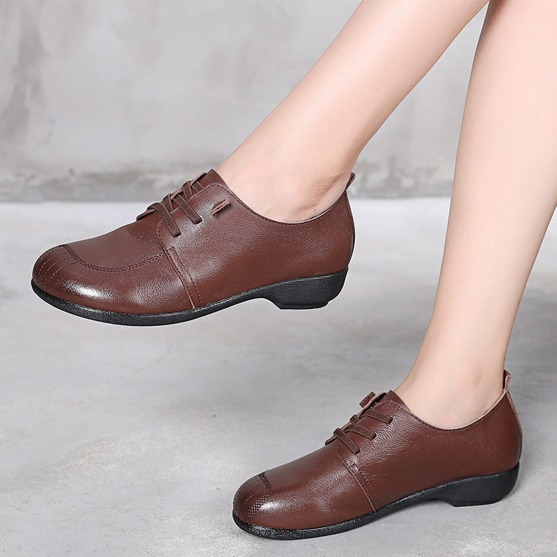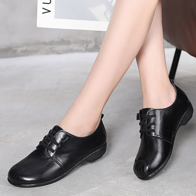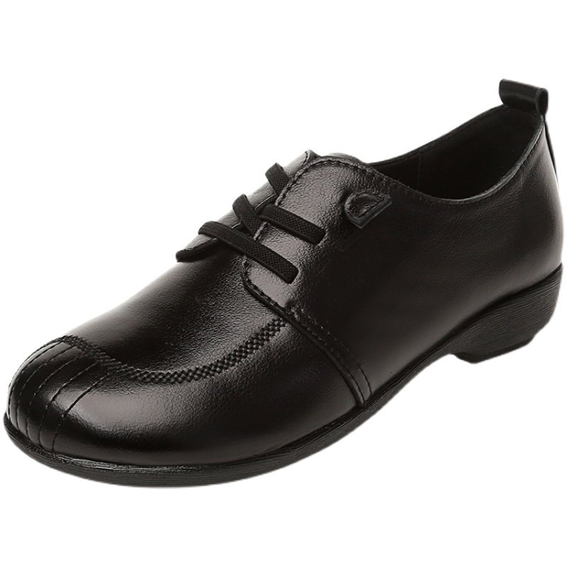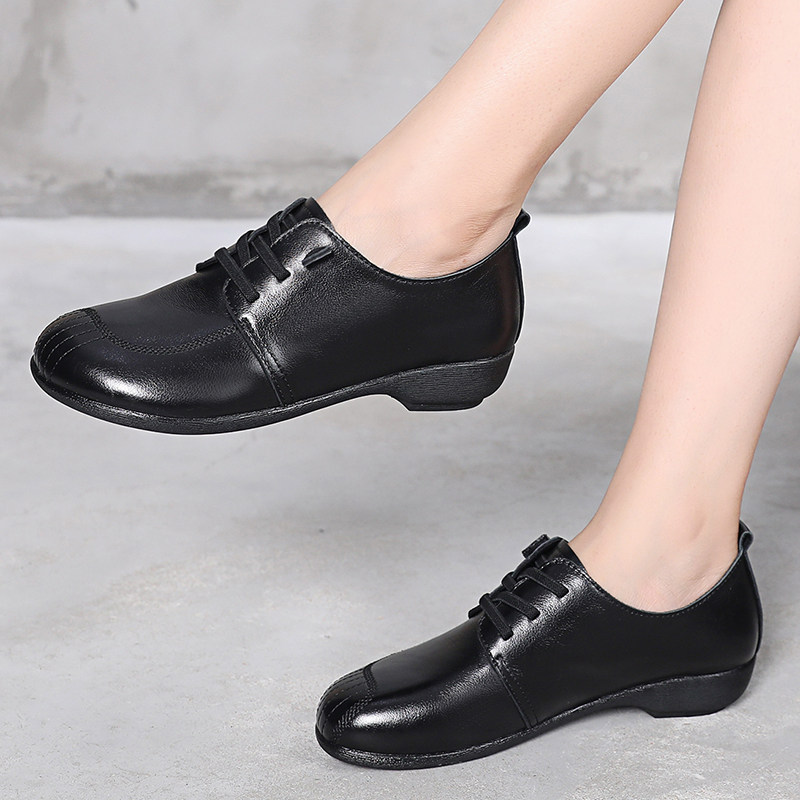 Spring and autumn low-heeled leather round toe soft leather large size flat women's single shoes retro British style small leather shoes soft bottom mother shoes