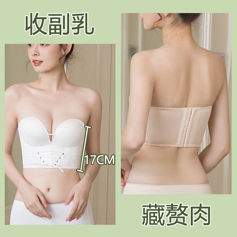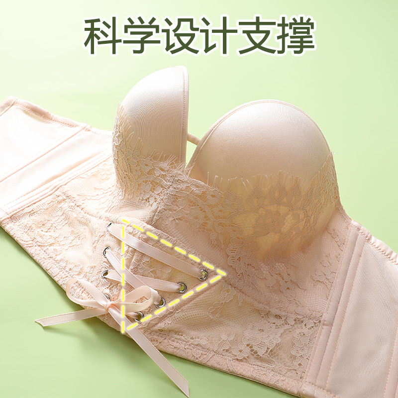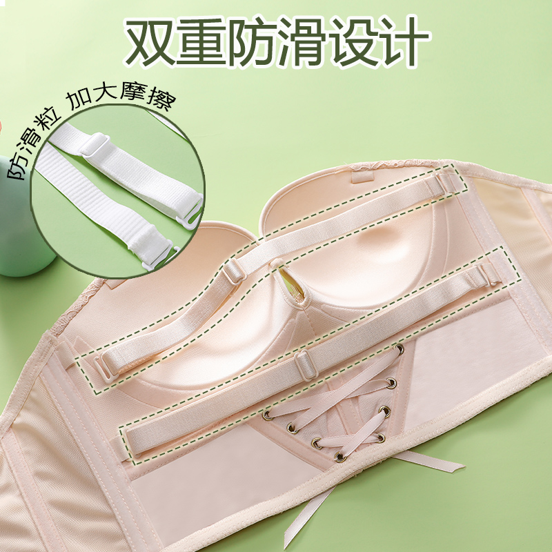 Strapless underwear summer big chest showing small thin section anti-sagging gathered anti-slip upper collection large size invisible bra