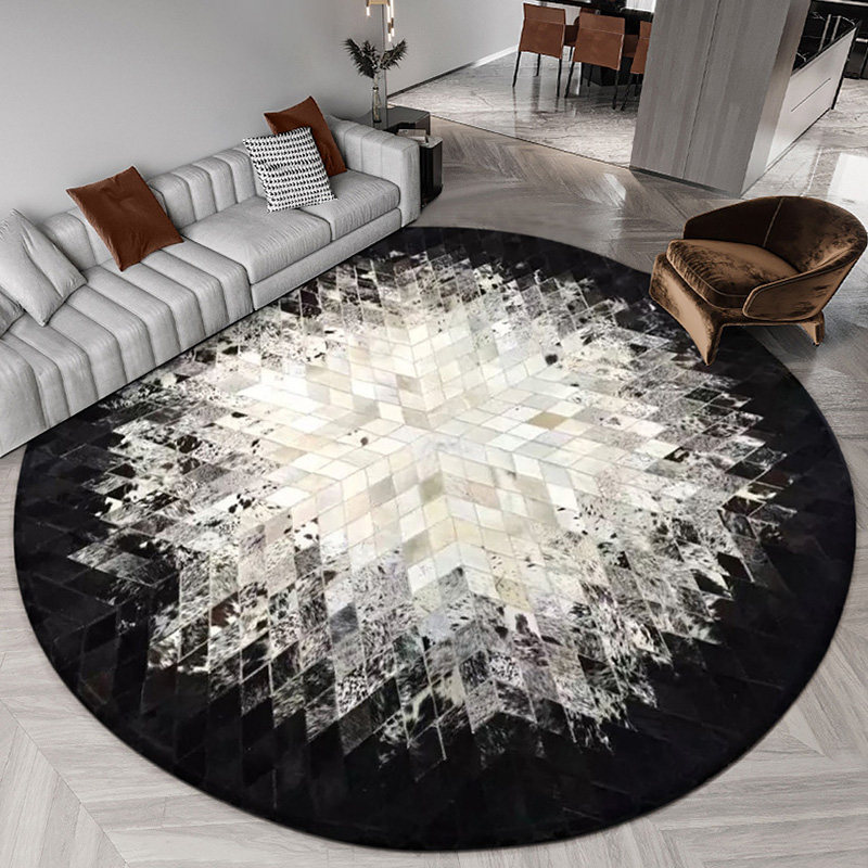 Leather stitching round rug living room Nordic light luxury coffee table study bedroom bedside blanket computer swivel chair floor mat
