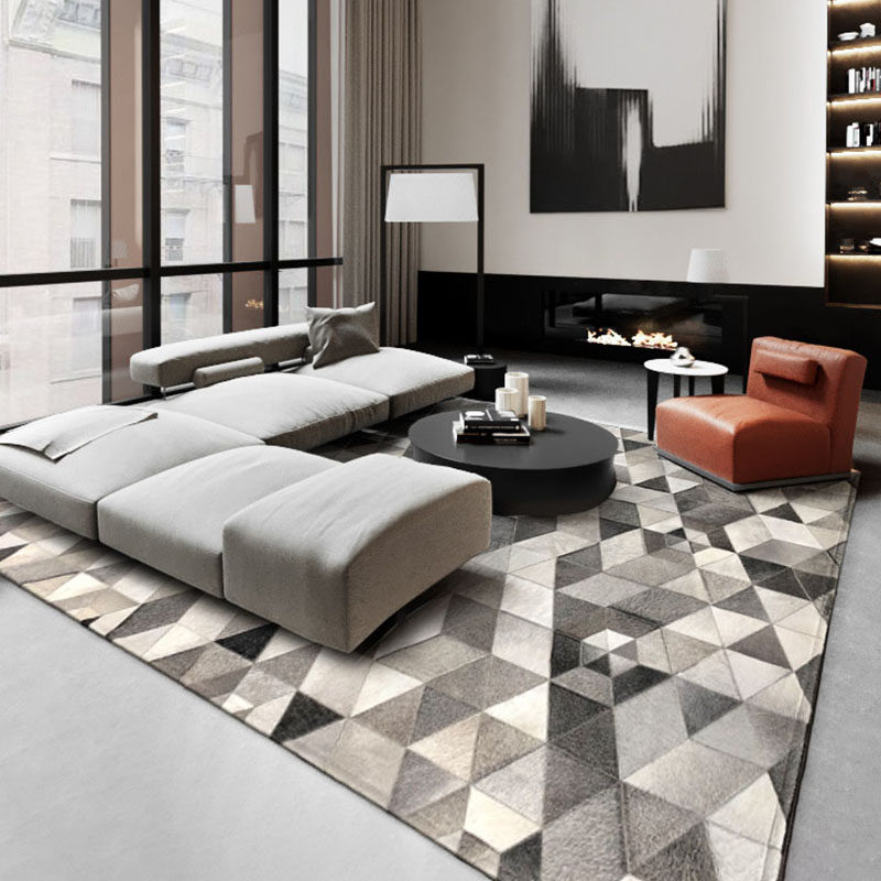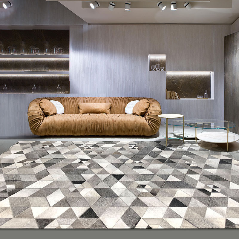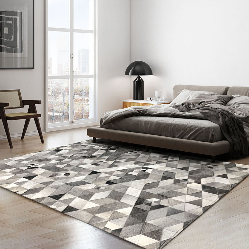 Original cowhide stitching carpet light luxury living room home Nordic modern geometric coffee table cushion bedroom bedside model room