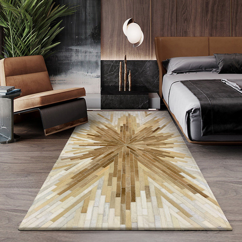 Light luxury high-grade long strip cowhide carpet bedroom Nordic geometric ins wind mat room bed front bed end bedside blanket