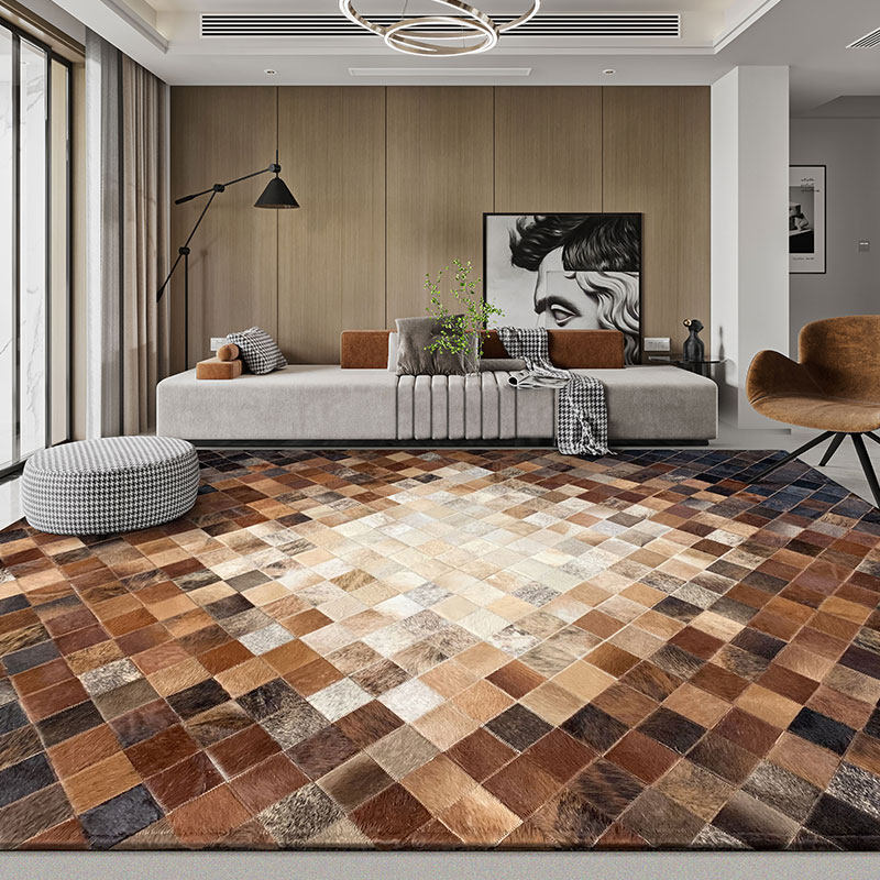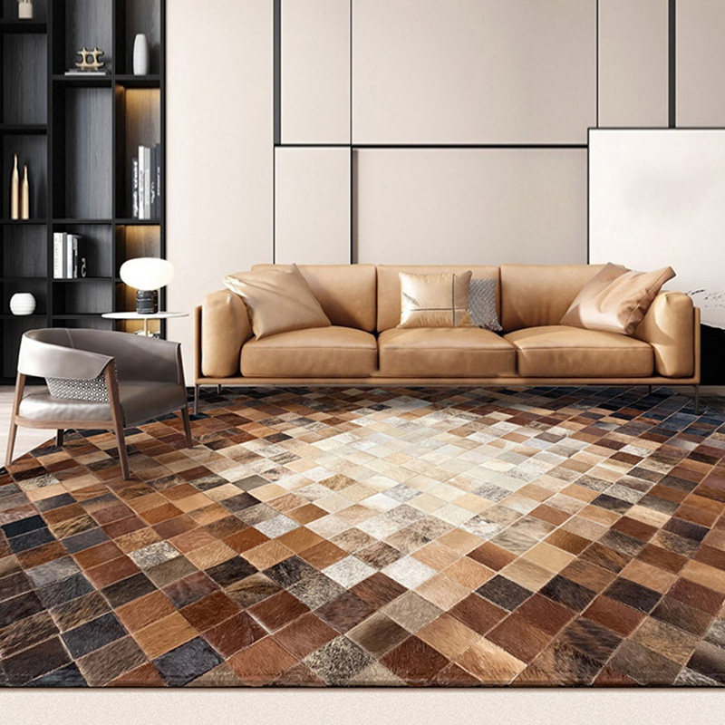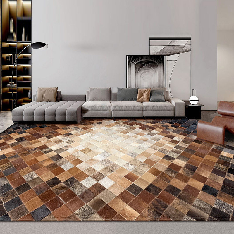 High-grade cowhide stitching carpet custom home Nordic geometric American light luxury living room coffee table mat bedroom bedside blanket
