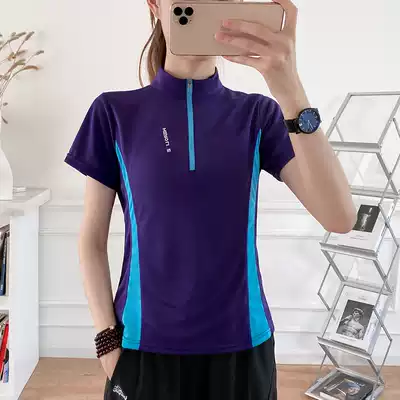 Outdoor sports T-shirt women's summer quick-drying breathable running fitness top yoga stand-up collar short-sleeved men's sportswear