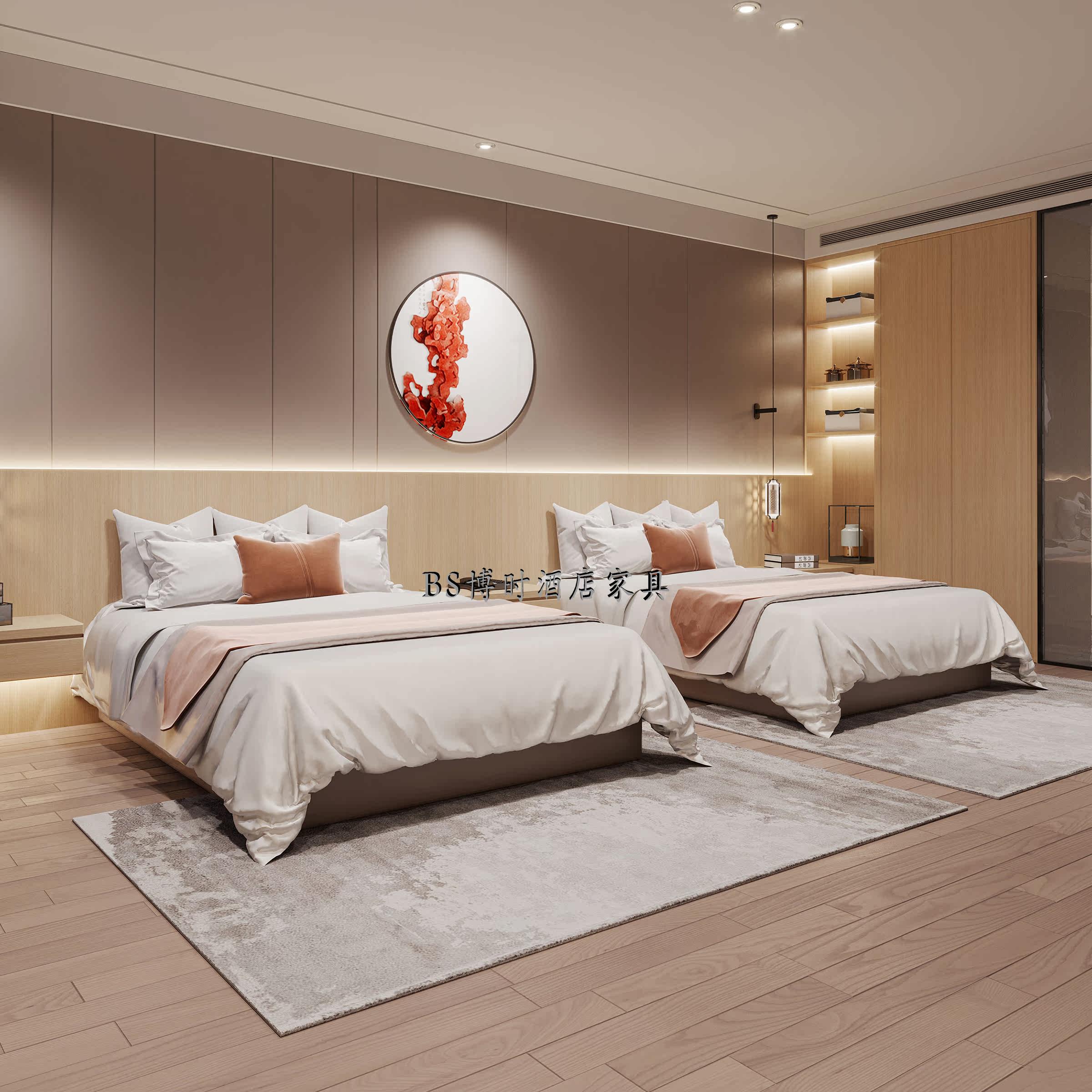 Hotel bed custom guesthouse furniture label room full room full room double bed rental room complete furniture
