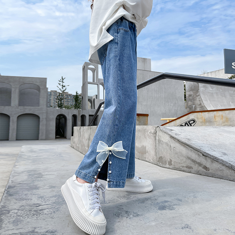 Girls' broad legs spring and autumn fashionable jeans 2023 new loose childhood pants in spring children