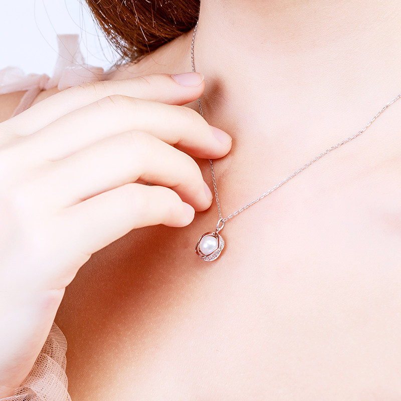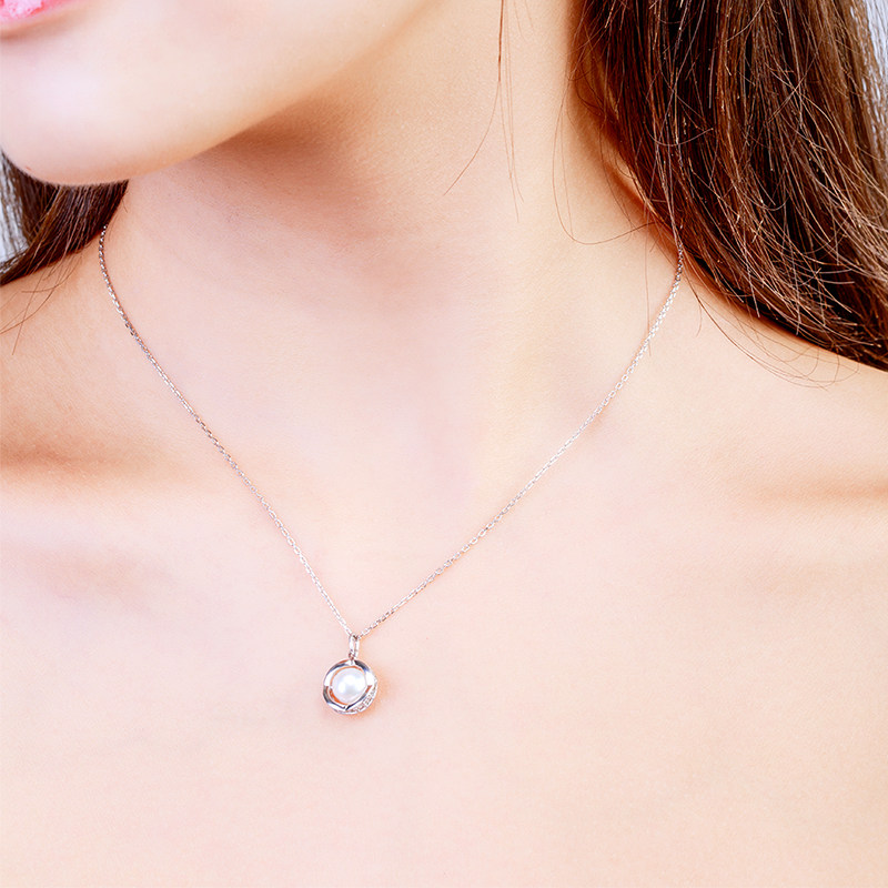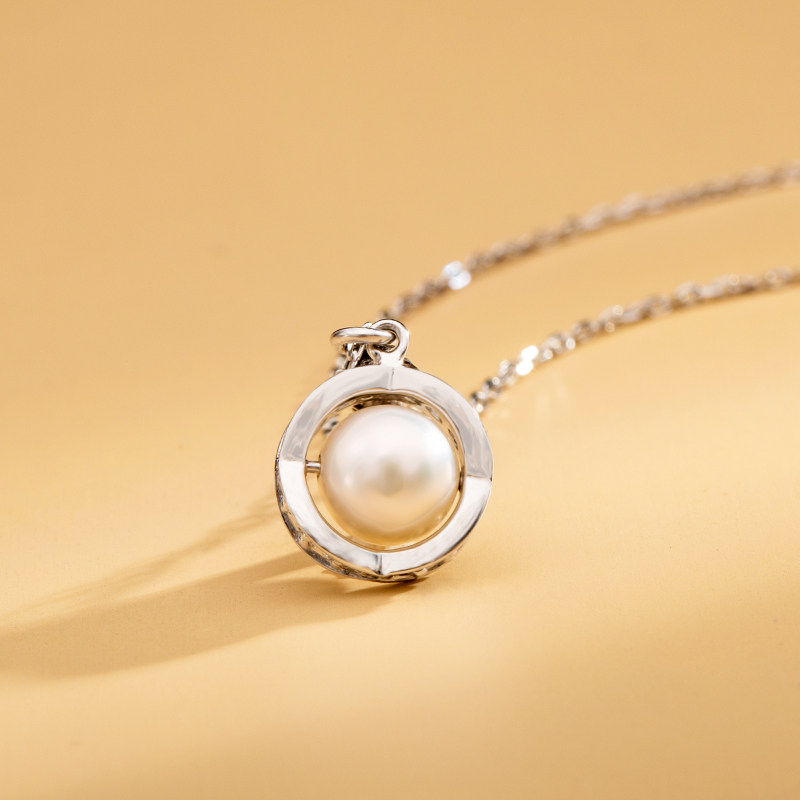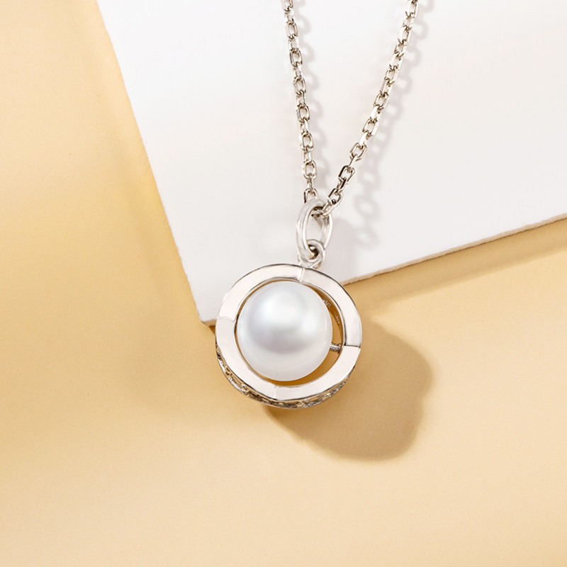 (China Gold) Zhenshang silver round pearl necklace light luxury niche row inlaid ring pendant women's fashion necklace