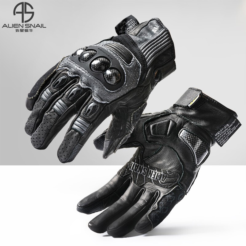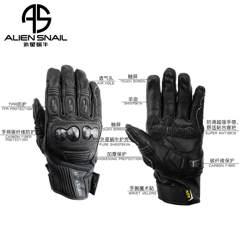 Alien Snail AT80 Pull Short Lamb Leather Locomotive Gloves Carbon Fiber Maintenance Shell Anti-Touch Screen Rider Gloves